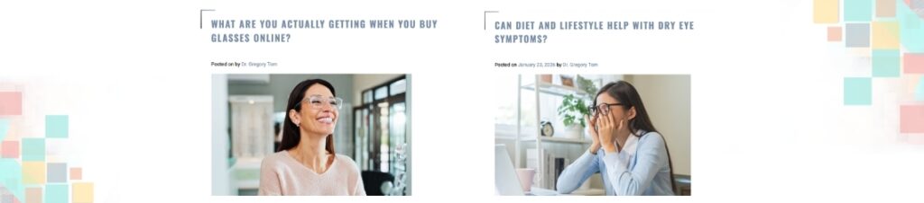 Boost your website traffic by publishing educational articles that address your patients’ concerns. A post detailing how to identify dry eye symptoms at home is a great way to show expertise and prompt readers to schedule an appointment. When people recognize these common signs, they are much more likely to seek professional care.